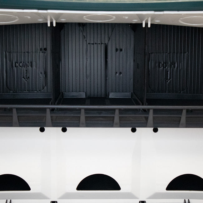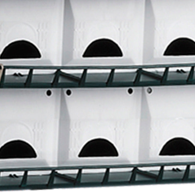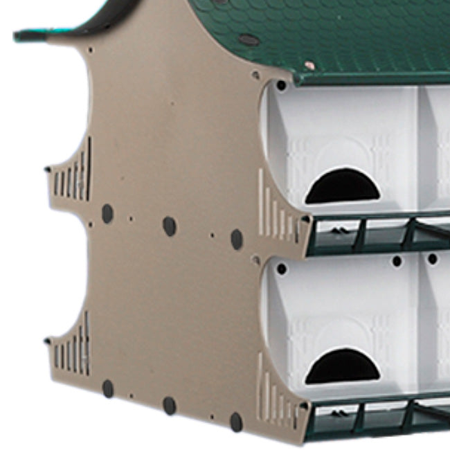 House a host of purple martin families with the S&K Purple Martin House. Sturdy plastic pieces snap together with plastic screws to form this two story green, tan, and white house. This dwelling features slip resistant floors, convenient landing and take-off rails on each floor, and swing-up doors for easy cleaning. Each of the twelve rooms measures a comfortable 6" x 6" x 6" for the nesting martin families, but if you'd like larger compartments and fewer families, you can easily adjust the inner compartments to 6" x 6" x 12" in order to create six nesting sites. Ventilated door panels provide maximum comfort, and the crescent-shaped starling resistant entrances deter pest birds looking to usurp your rightful martin tenants. For even more versatility, plug the crescent holes and punch out the round entry hole on each apartment. Overhangs, gutters, and rails also help protect martins and their eggs. Mount this home high on the S&K Telescoping Aluminum Pole or use the S&K Pole Adapter to mount it on an existing 1.25" diameter round pole (not included). The S&K Purple Martin House is a practical option for current martin landlords or bird lovers new to the hobby. Assembly required. Made in the USA.